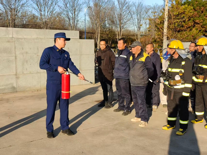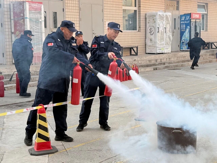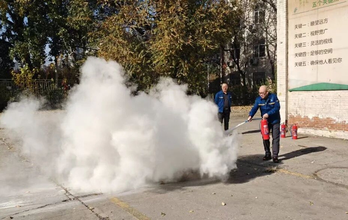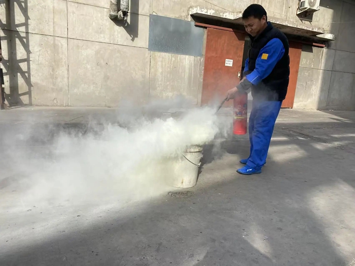 “提、拔、握、壓——對準火源根部掃射!”在演練現(xiàn)場,安全員手持滅火器,結(jié)合冬季干燥、火情易蔓延的特點,向員工講解操作要領(lǐng),強調(diào)冬季滅火器維護重點。