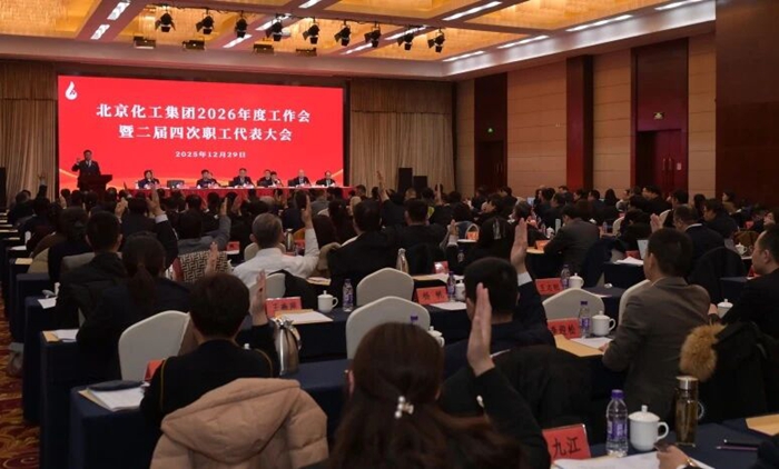 12月29日,北京化工集團召開2026年度工作會暨二屆四次職工代表大會,黨委書記、董事長陳宇以《堅持“231”戰略布局和“三個北化”建設不動搖 奮力書寫集團公司“十五五”時期高質量發展的嶄新篇章》為題作總結講話,黨委副書記、董事、總經理楊旭輝以《砥礪收官“十四五” 擘畫啟航“十五五”——為打造國內領先國際知名的創新型企業集團而奮斗》為題作工作報告,黨委常委、副總經理韓寶海主持會議。