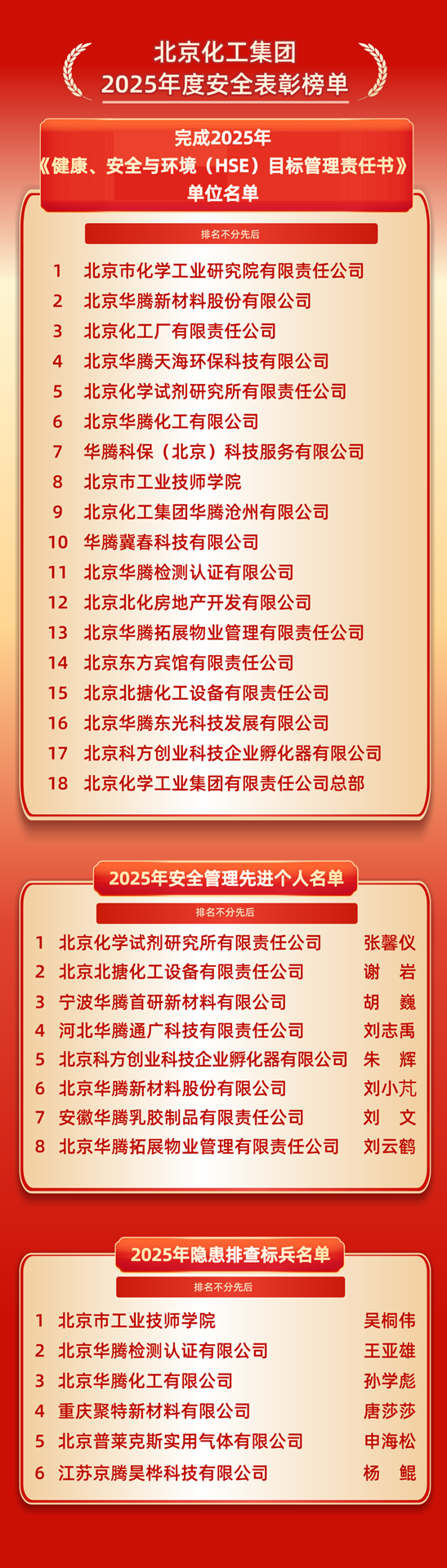●搶抓發展窗口期,增強風險意識,提高政治站位,為“三個北化”發展營造良好外部環境安全生產是集團必須扛起的政治責任和發展底線。作為首都國企,必須深刻認識安全工作的極端重要性,堅決摒棄麻痹思想,始終將安全置于優先位置;扛牢政治責任,壓實主體責任鏈條,確保安全管理無死角;各單位須將安全工作作為自身發展的內在要求,主動嵌入生產經營全流程;織密“橫向到邊、縱向到底”的責任管理體系,強化考核與協同,確保責任落地生根。
